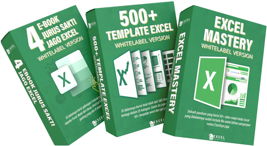 EXCELMASTER ID adalah paket komplit excel yang berisi kelas online, template excel dan e-book rumus dan shortcut excel untuk bisnis kamu yang bisa kamu jual kembali, bisa kamu klaim ini produk kamu sendiri. Ini adalah versi whitelabel yang bikin kamu bisa punya produk digital sendiri tanpa harus membuatnya
